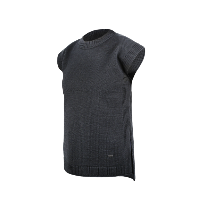 Dámská vesta, ve volnějším střihu se hodí ke kalhotám i sukni. Je to vhodný doplněk do chladnějších dní.