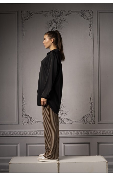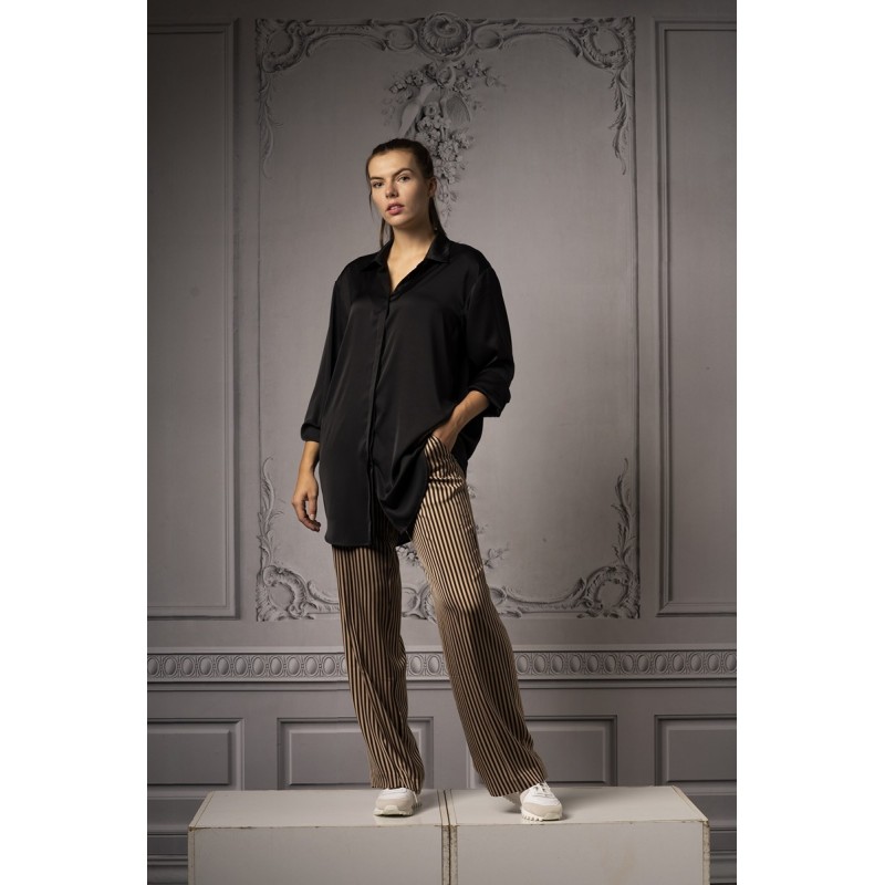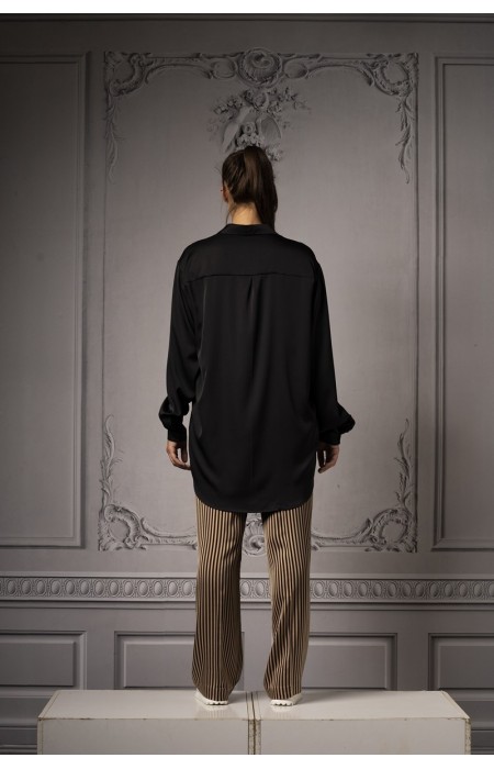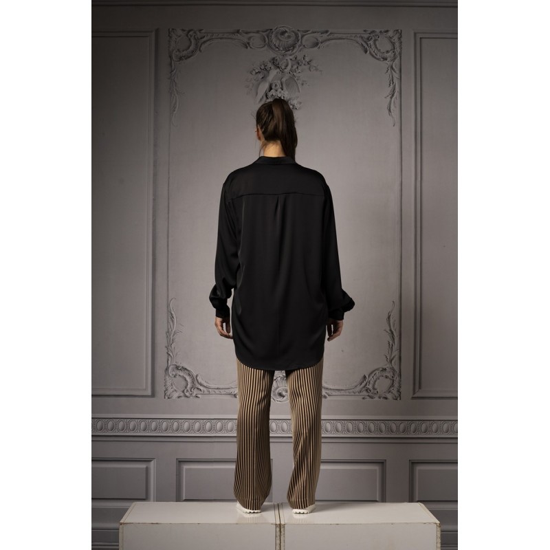 Košile rovného střihu se skrytým zapínáním. Působí luxusně díky absenci štepování. Dlouhý rukáv