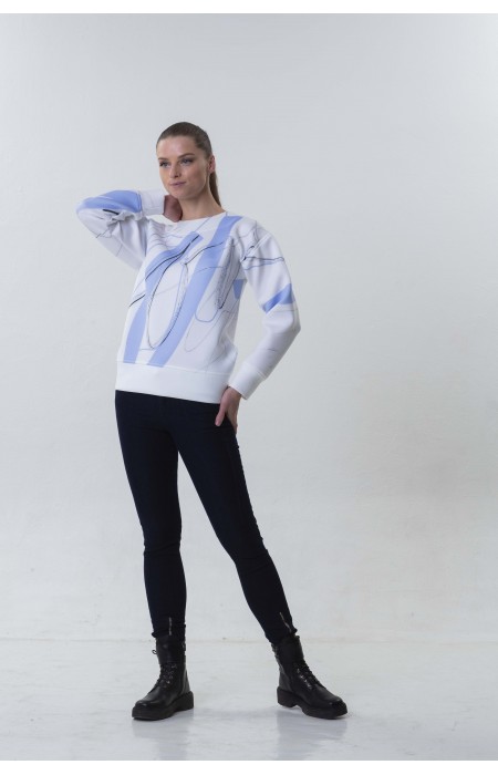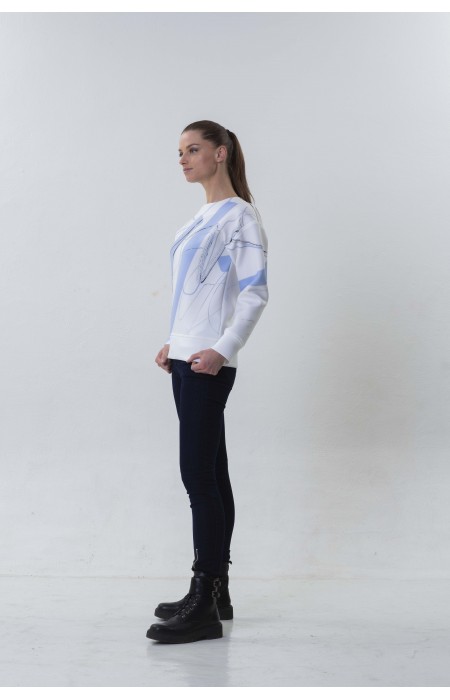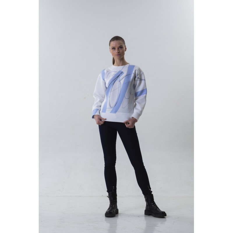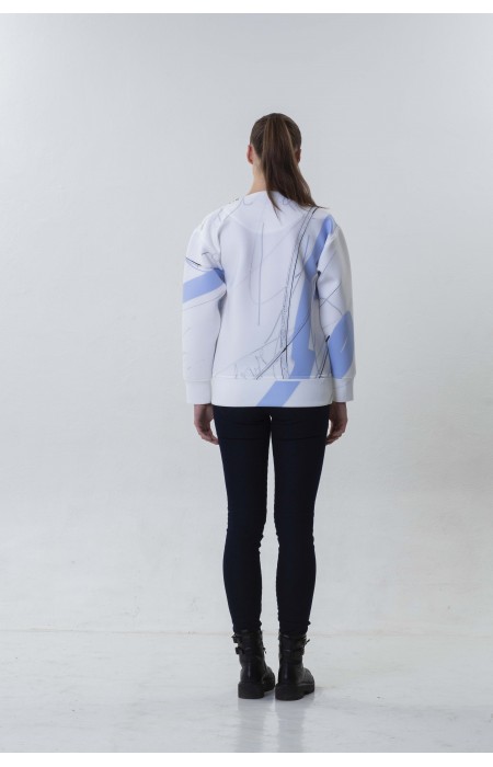 Neoprenová mikina rovného střihu s autorským tiskem. Na rameni krátký zip pro snazší oblékání. Zadní díl je jednobarevný , autorský tisk je pouze na předním díle. Mikina je ukončená rantlem z téhož materiálu