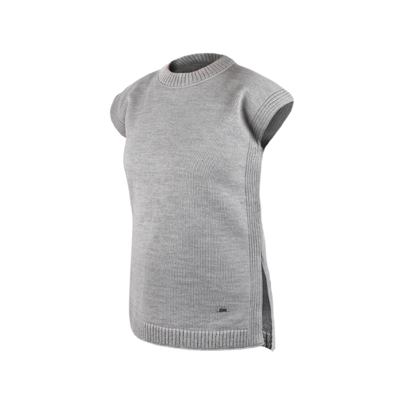 Dámská vesta, ve volnějším střihu se hodí ke kalhotám i sukni. Je to vhodný doplněk do chladnějších dní.
